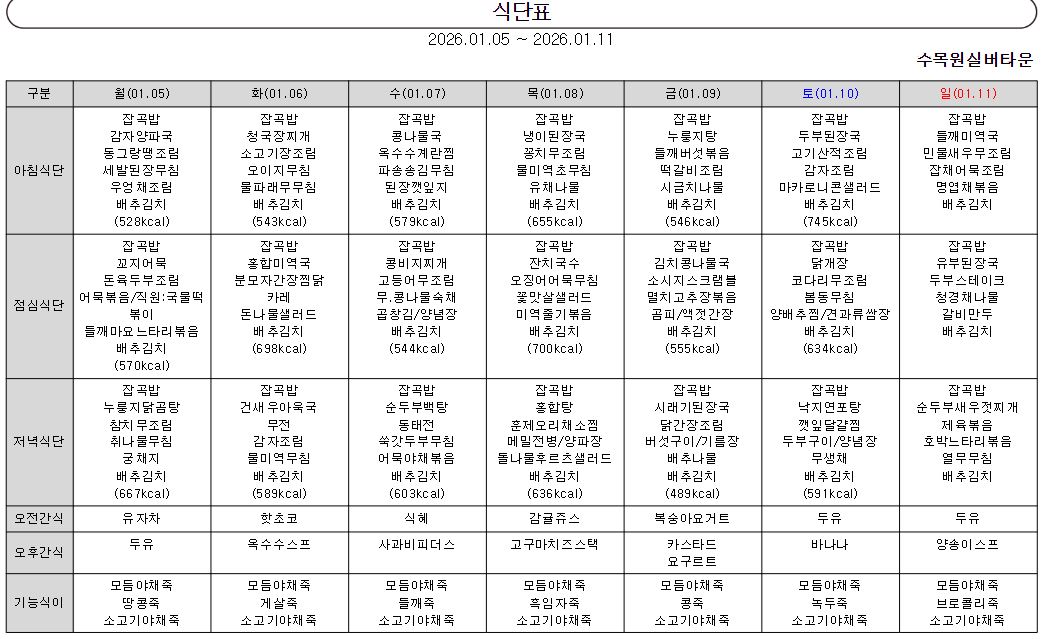 ¿ù°£½Ä´ÜÇ¥
