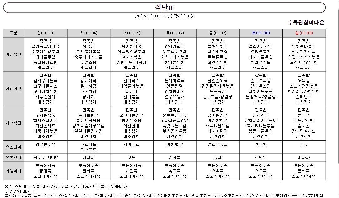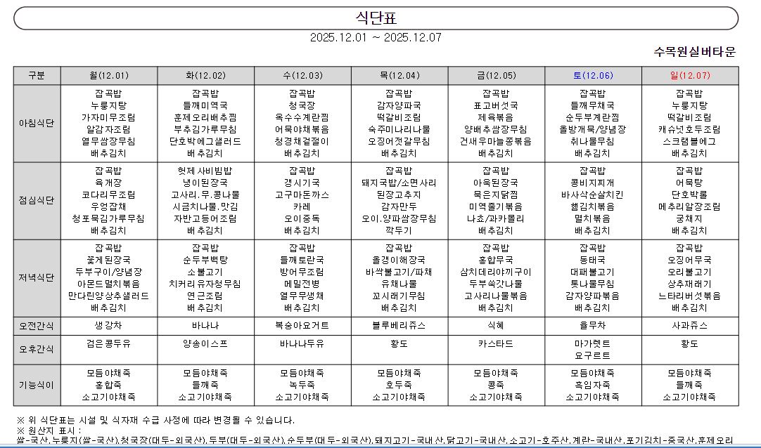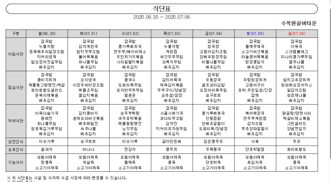 ¿ù°£½Ä´ÜÇ¥