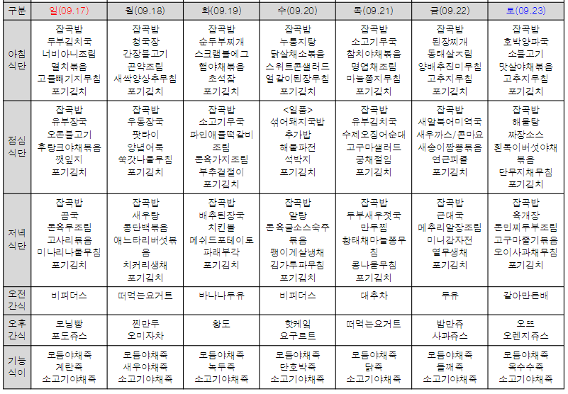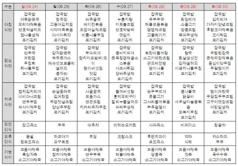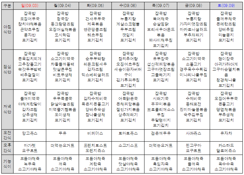 Á¦¸ñ * 9¿ù ¼ö¸ñ¿ø½Ç¹öŸ¿î ½Ä´ÜÇ¥ *