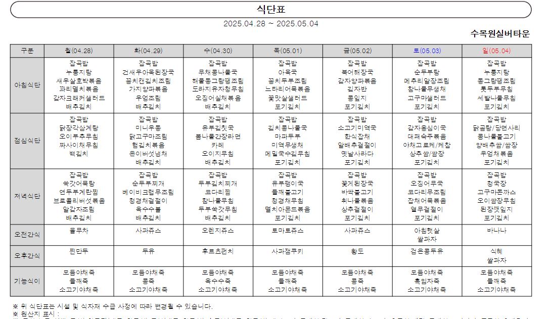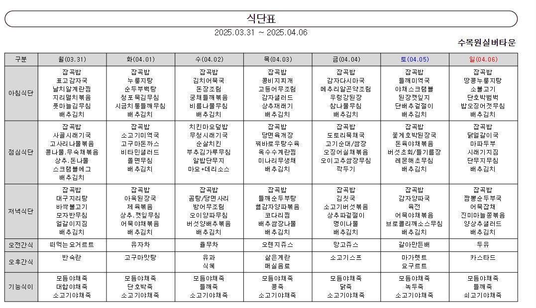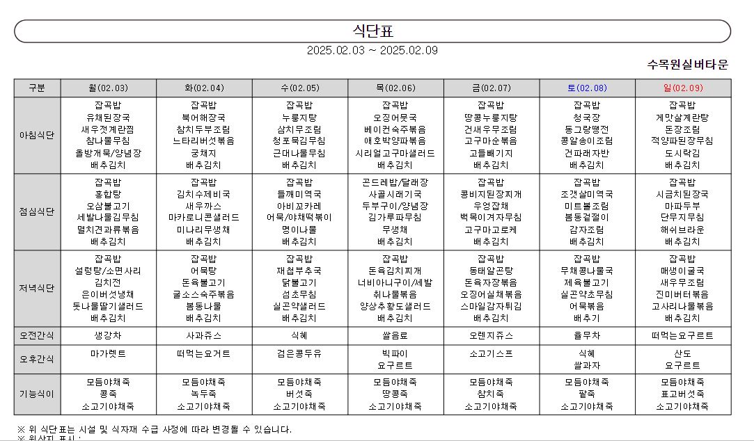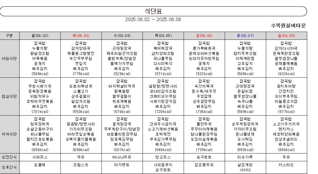 ¿ù°£½Ä´ÜÇ¥