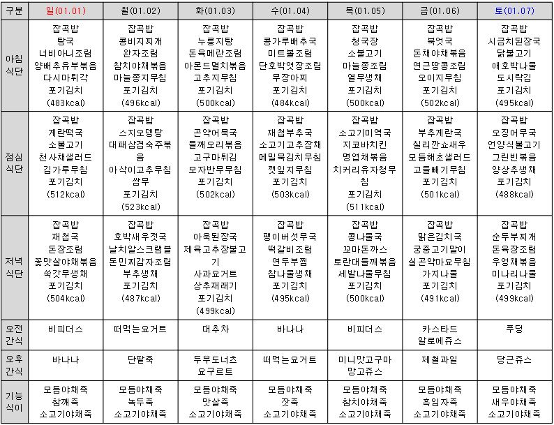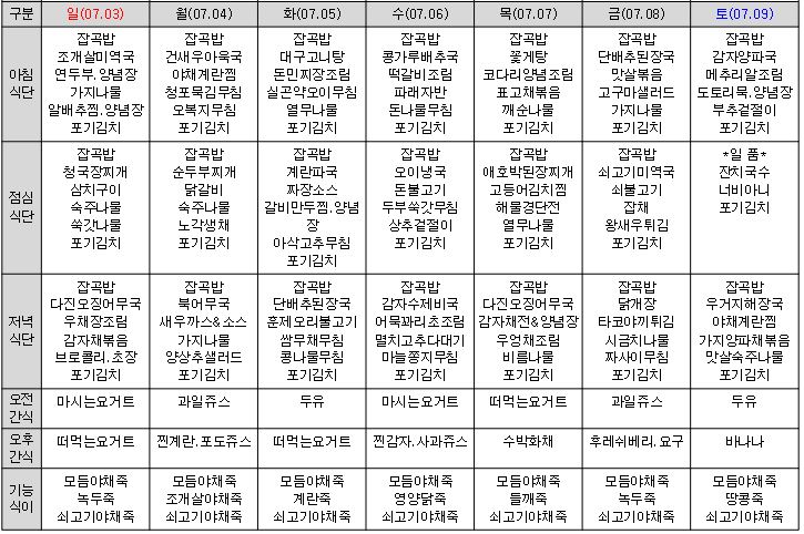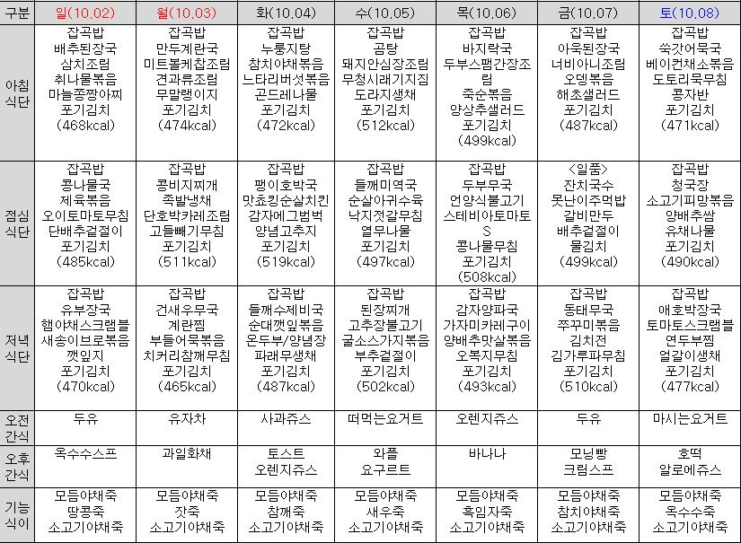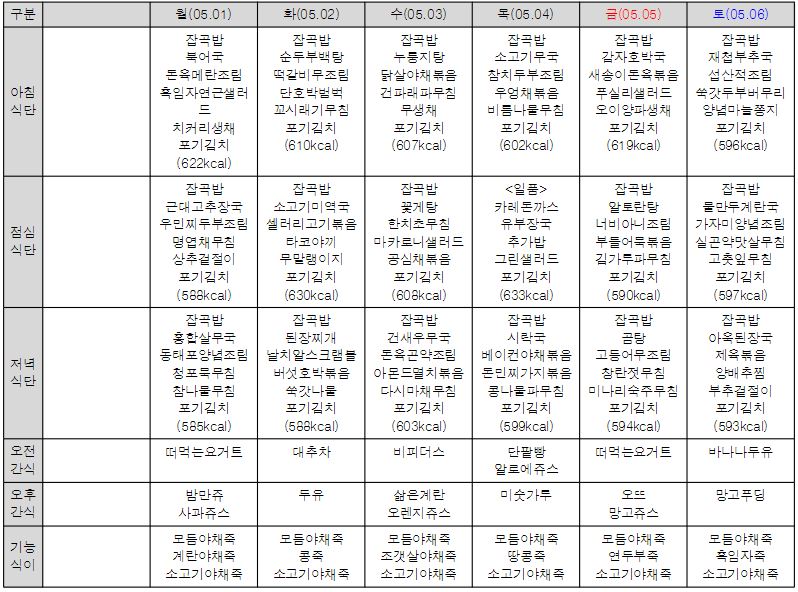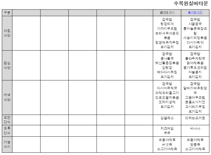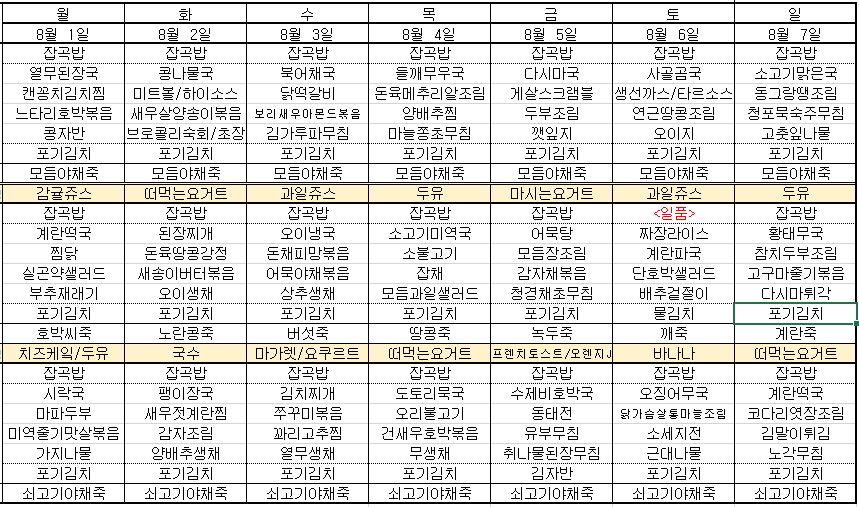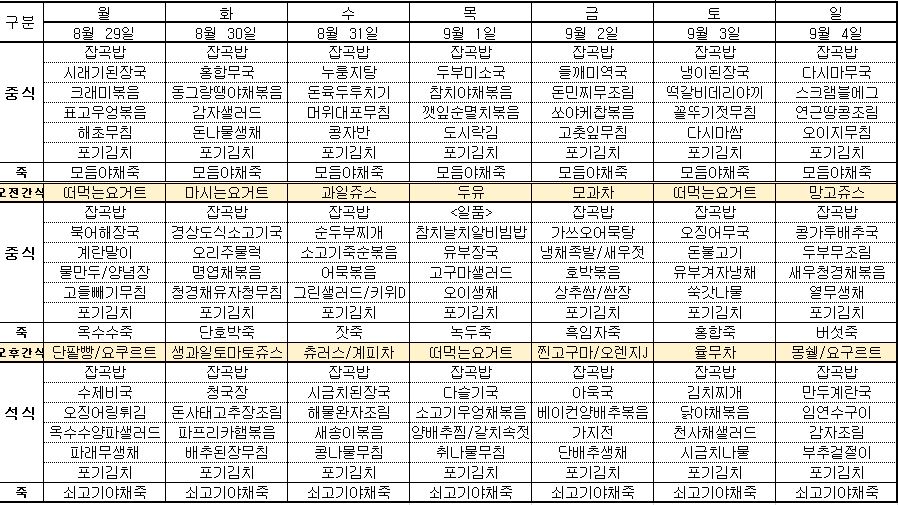 ¿ù°£½Ä´ÜÇ¥