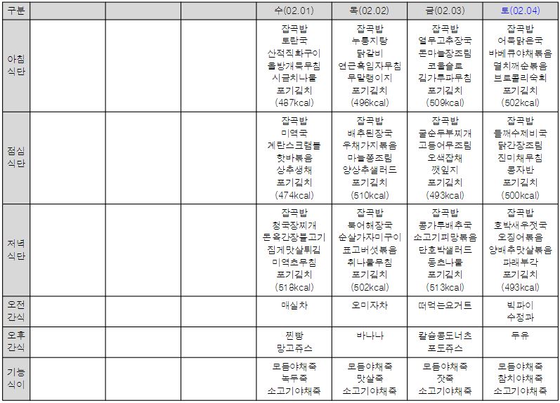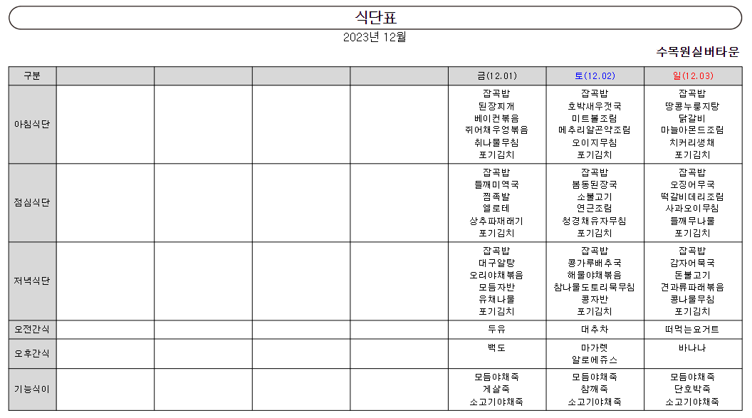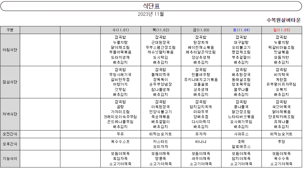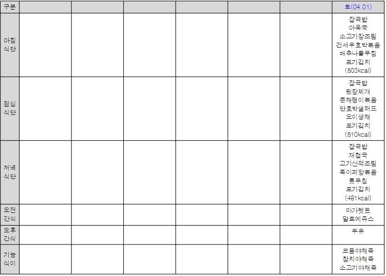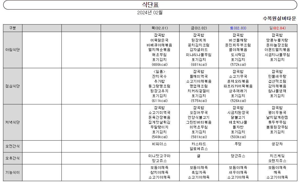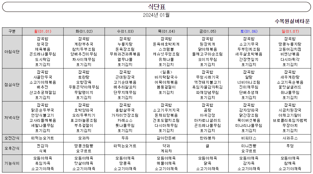 ¿ù°£½Ä´ÜÇ¥
